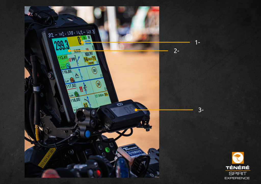 2- Odometer (mileage counter): shows the distance traveled and allows you to follow the roadbook accurately. Some models operate using GPS.